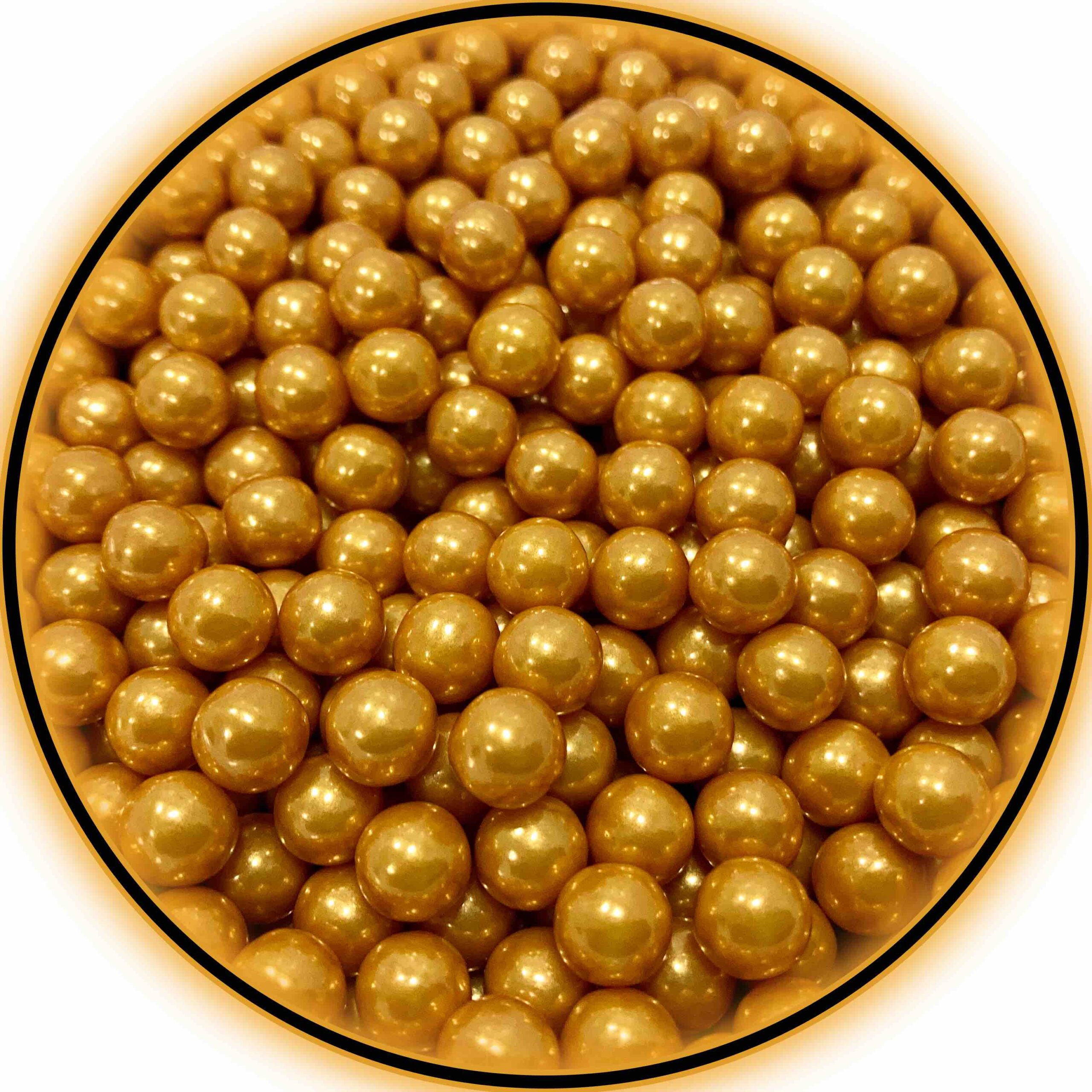 DECORACION DE AZUCAR 100% COMESTIBLE, PERLA BRILLANTE DORADA DE TAMAÑO 7mm.